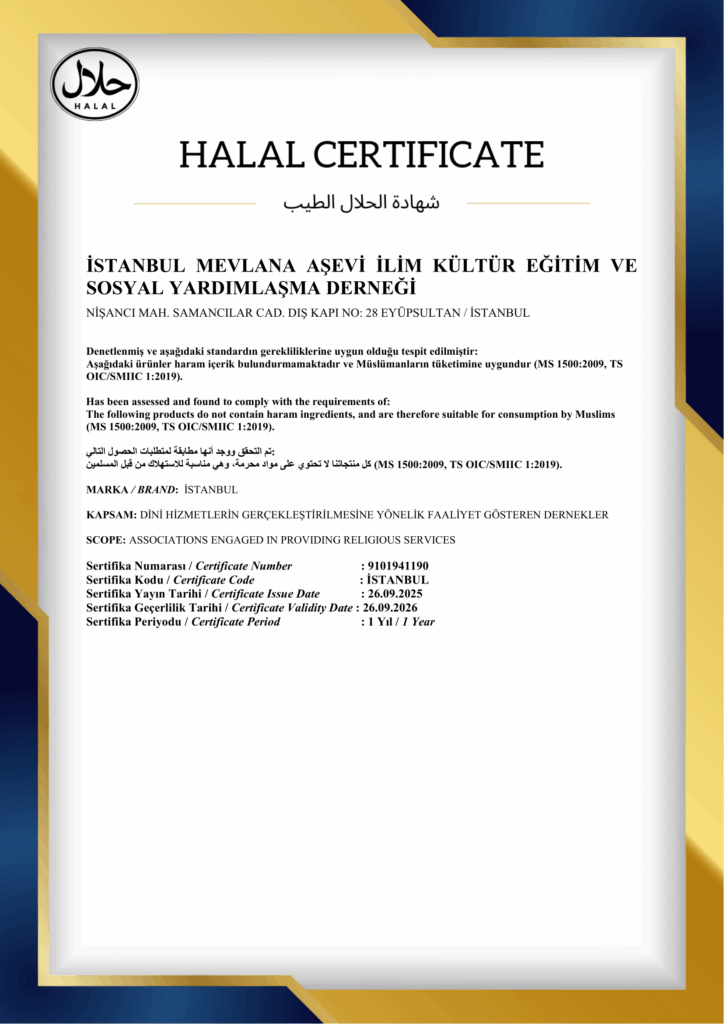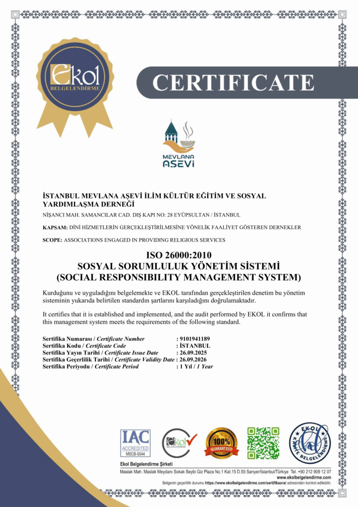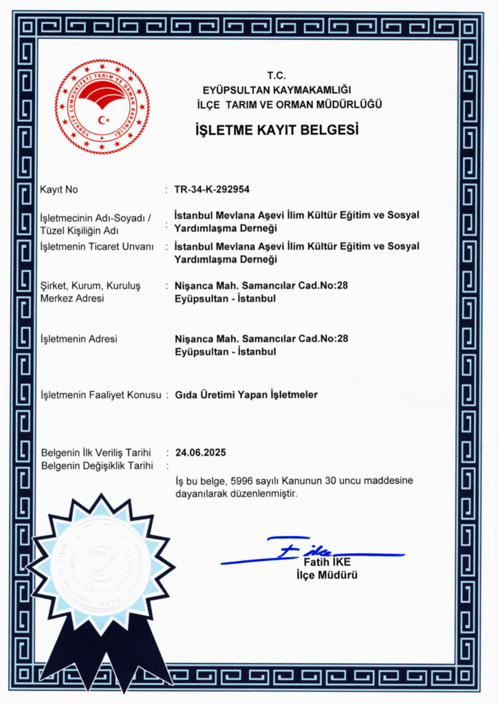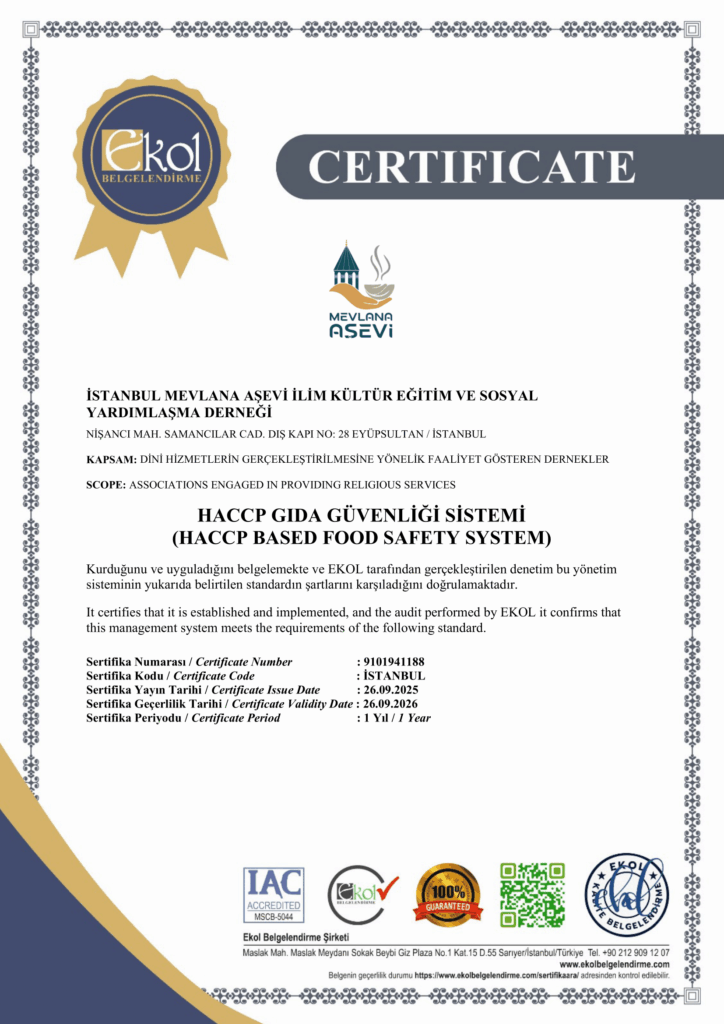 İstanbul Mevlana Aşevi olarak 2006 yılında faaliyete geçtiğimiz andan itibaren tüm aldığımız sertifika ve belgeler aşağıdadır.